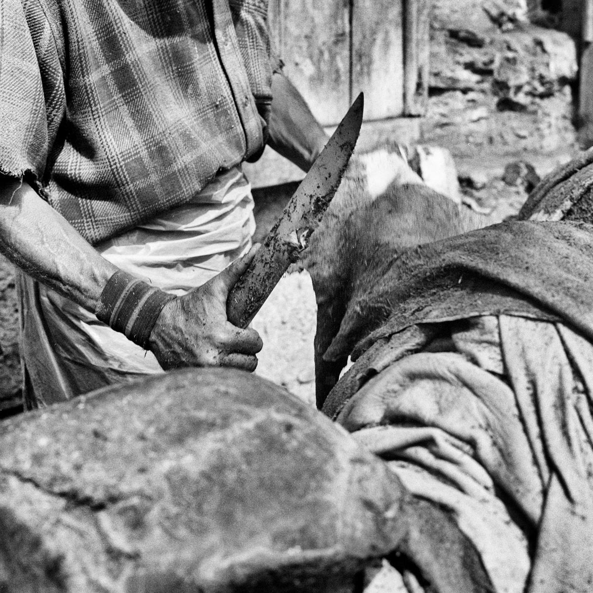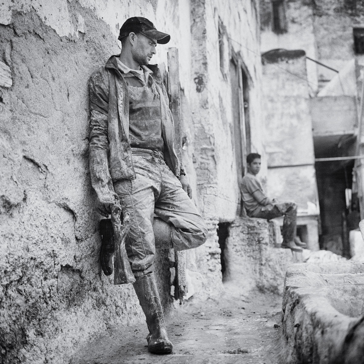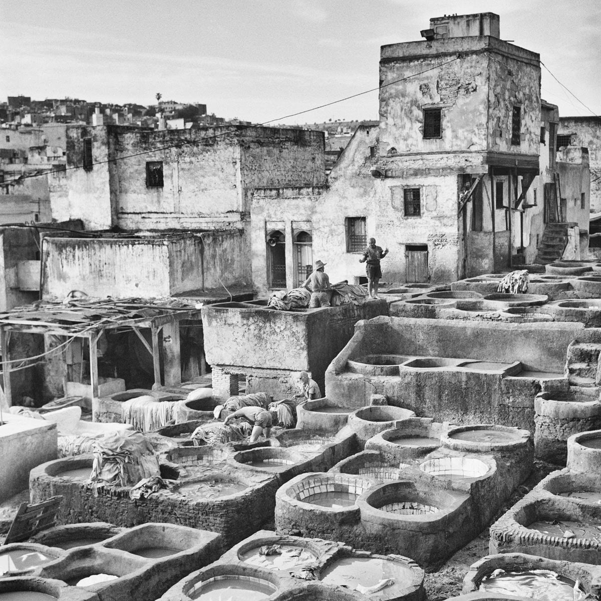 Les touristes, attirés par les vendeurs de maroquinerie, les regardent du haut des terrasses, une feuille de menthe sous le nez pour masquer la forte odeur du lieu. Eux, ce sont les tanneurs de Fès. Une des grandes fiertés de la plus ancienne médina au monde. Travaillant toutes l’année dans des conditions qui ont peu changé depuis douze siècles pour un salaire en dessous du smic marocain, ils continuent inlassablement, jour après jour, les même gestes qu'ont fait leurs ancêtres avant eux. Mettons-nous à leur niveau, les yeux dans les yeux.